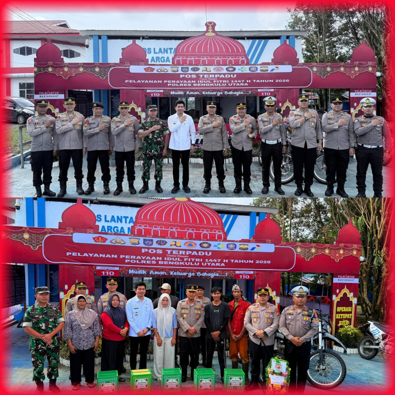 Bengkulu Utara, Djitu-online.com – Ketua DPRD Kabupaten Bengkulu Utara, Parmin. S.Ip, bersama Bupati Bengkulu Utara, Arie Septia Adinata, SE.M.Ap., mendampingi Kapolda Bengkulu, Irjen Pol. Mardiyono, SIK, MSi., dalam serangkaian kegiatan bakti sosial dan kesiapan Operasi Ketupat di wilayah Kabupaten Bengkulu Utara pada Rabu (11/03/2026).